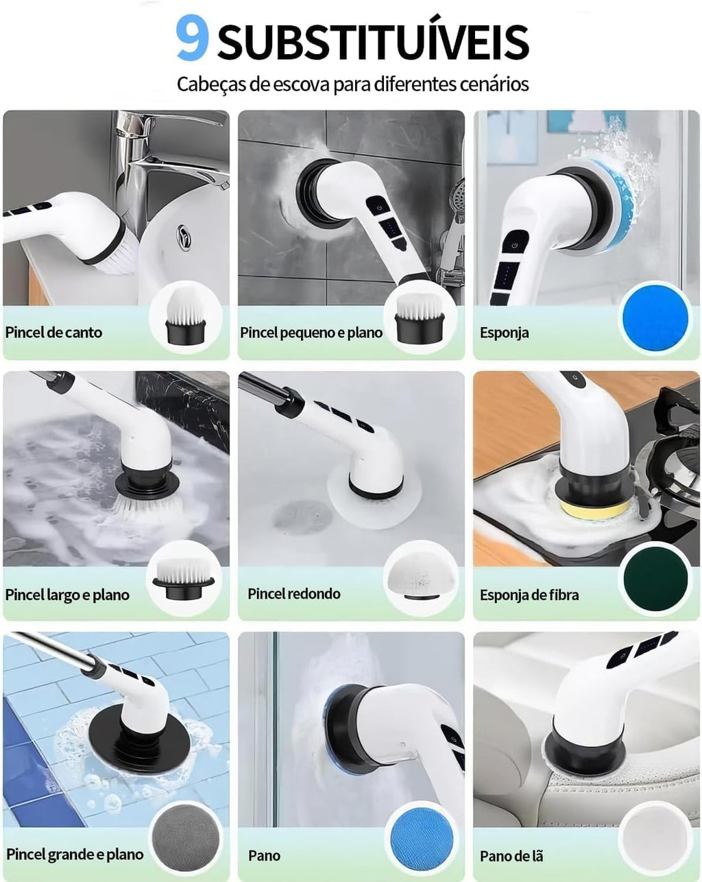- ✅ 9 Acessórios Intercambiáveis: Escovas de diferentes tamanhos e formatos para cada tipo de limpeza.