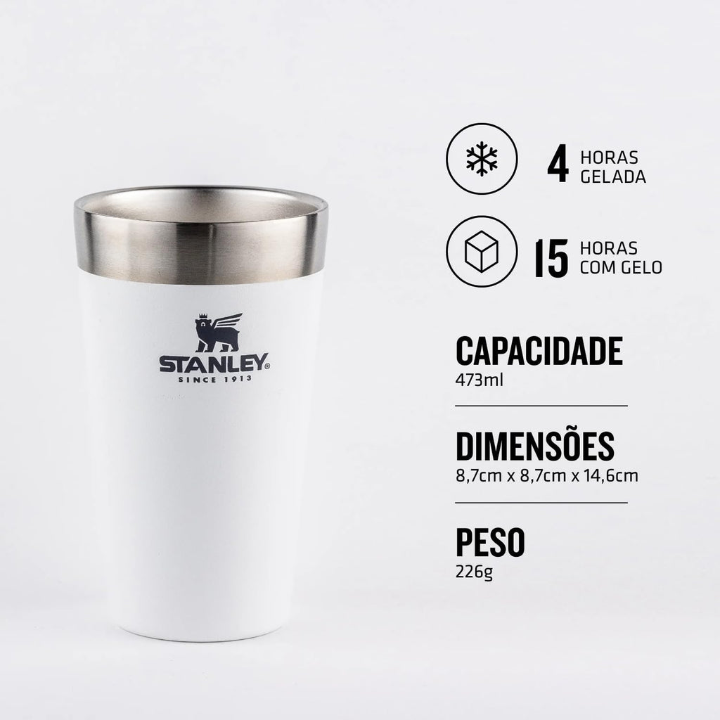 Você tem um estilo aventureiro, mas não quer abrir mão do relaxamento? Fizemos este copo térmico de cerveja Stanley pensando em você! Resistente, durável e atemporal, com preservação térmica de até 4 horas, isolamento a vácuo de parede dupla e um abridor de garrafas anexado à tampa. Saboreie sua cerveja gelada até o último gole. O Copo Térmico de Cerveja sem Tampa 473ml é a escolha para dias inesquecíveis de descontração e lazer. Sua parede dupla possui uma tecnologia de isolamento que impede que o copo transpire por fora, acabando com a sensação desconfortável de ter as mãos molhadas. Seu design, além de marcante e clássico, foi pensado especialmente para garantir uma pegada confortável e firme, sem deixar escorregar. O nosso copo térmico para cerveja é para você beber tanto em casa como na rua com os amigos. Tudo isso com a garantia de que sua bebida vai estar sempre na temperatura ideal, mesmo que você deixe o copo em cima da mesa por muitas horas, entre uma conversa e outra. Mesmo sendo um produto sem tampa, você pode levá-lo aonde quiser. Ele é versátil e ideal para quem gosta de carregar seu próprio copo de cerveja para todos os lugares no final de semana. Quando chegar ao seu destino, é só você servir a sua bebida favorita e deixar que o Copo Térmico de Cerveja Stanley faça o resto.